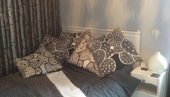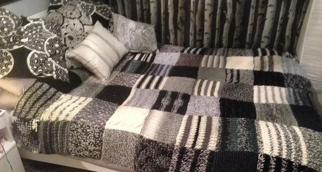 . blanket knitted by fred broom . cushions made by fred broom .